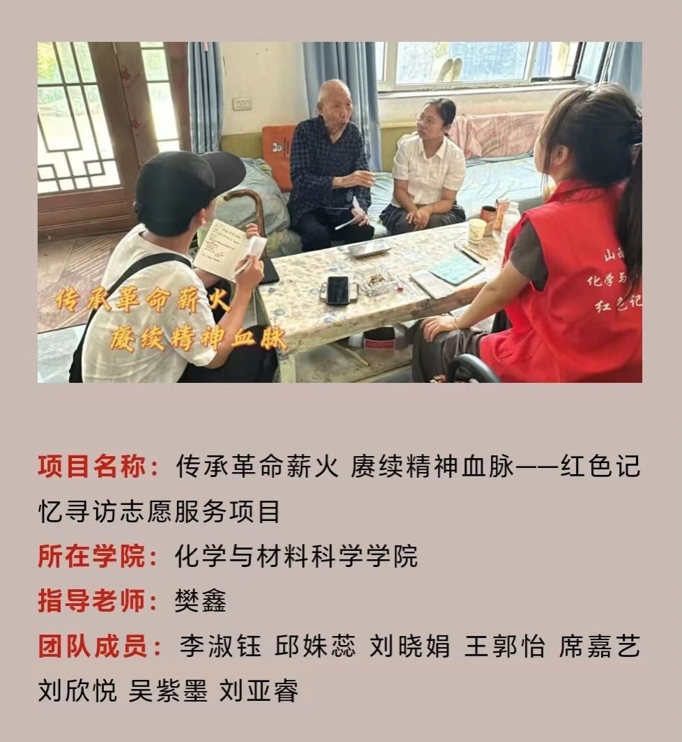 红色记忆寻访团7年来赴山西省各个地区采访革命老兵、参观爱国主义教育基地、开展红色主题宣讲活动情况,旨在引导青年学子深入探访革命历史遗迹,重温党的光辉历程和革命先烈的英勇事迹,从而强化对历史的深刻认知与记忆,确保红色历史永载史册,革命精神代代相传。