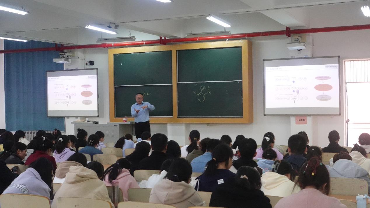 在课堂上,包永胜教授深入浅出地剖析了“官能团”与“C—H键”的核心概念,巧妙地运用时间轴来展示知识体系的逐步深化过程。他不仅介绍了诺贝尔化学奖得主的重要成就,还以杰出科学家为实例,深入探讨了关键技术的实际应用价值,并创造性地提出了“将转化挑战变为可能”的实现路径。通过课堂互动,学生们对相关理论知识的理解得到了进一步的加深,同时,包教授也鼓励大家勇于探索未知领域。