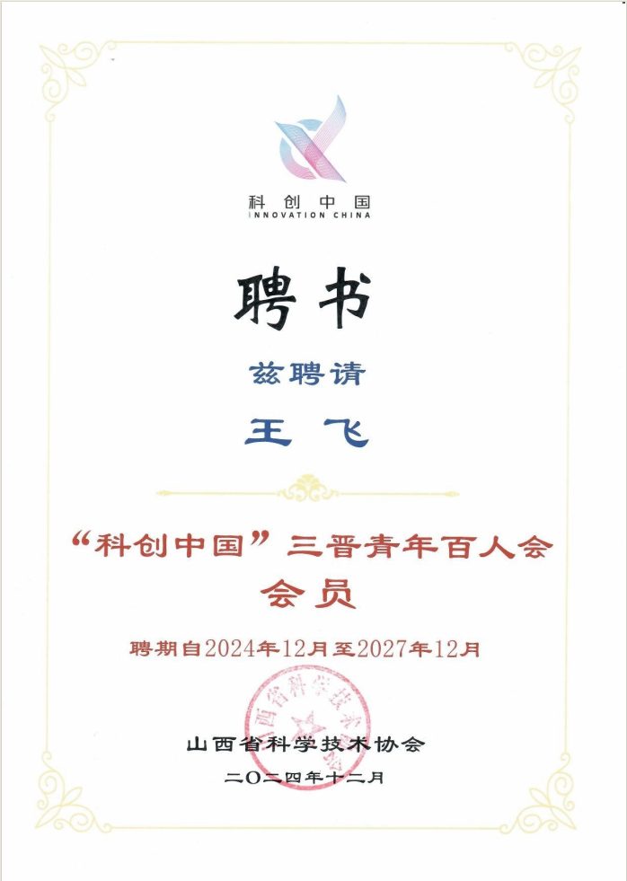 永利集团官网王芳教授和王飞教授入选“科创中国”三晋青年百人会首批会员名单。特此对两位教授表示衷心祝贺!