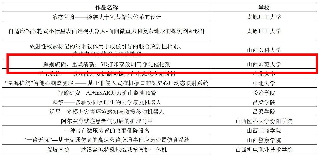 6月11日,第十九届“挑战杯”山西省大学生课外学术科技作品竞赛获奖名单重磅揭晓!永利集团官网作品“挥别硫硝,重焕清新:3D打印双效烟气净化催化剂”(指导教师吕文婷、霍启煌)脱颖而出,荣获二等奖。