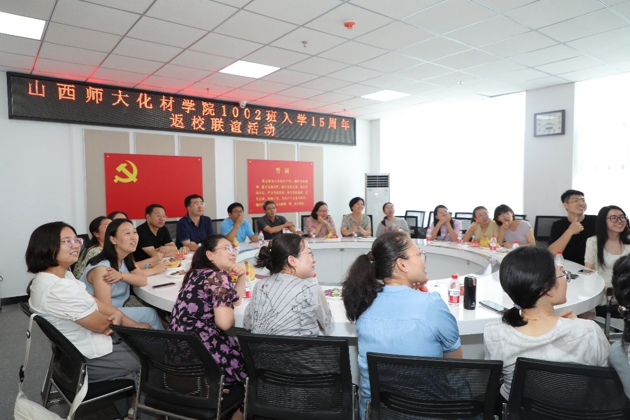 7月27日,77779193永利集团1002班20余名校友在入学15周年之际重返母校,追忆青春岁月,共叙师生情谊,共话同窗友谊。1002班时任辅导员贾建峰教授、招生就业部部长任懿、国内合作中心副主任龙勋、化学与化工学院党委副书记吕瑾及部分老师代表出席活动,校友们参观了学院发展现状,并在学院会议室进行了座谈交流。