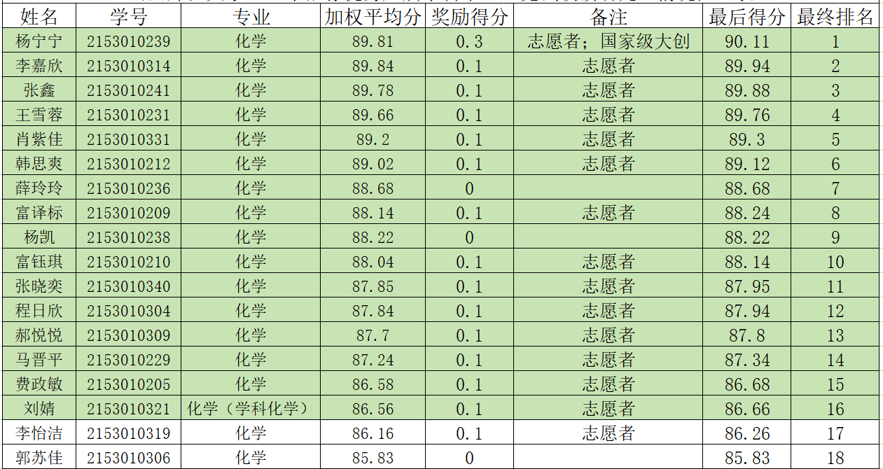 2025年化学专业推免生遴选结果: