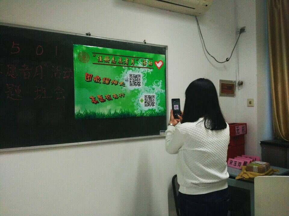 首先通过PPT形式,告诉同学们注册时需要注意的事项,随后组织大家扫二维码或网页注册的形式成为网络志愿者。最后由宣誓人引领大家宣誓,表明同学们志愿服务的决心。