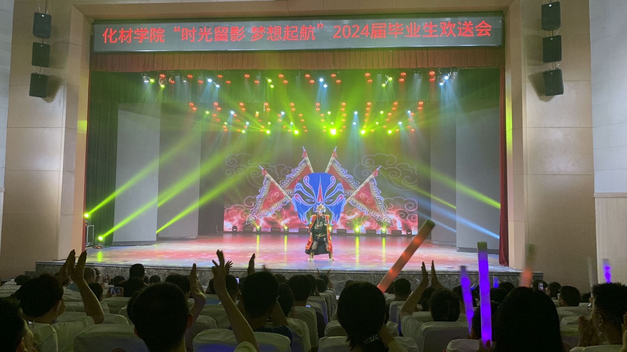 5月30日晚,永利集团官网在北区文化艺术活动中心举办“时光留影 梦想启航”2024届毕业生欢送晚会。院领导、毕业班辅导员、2024届毕业生及其他年级学生代表观看晚会。