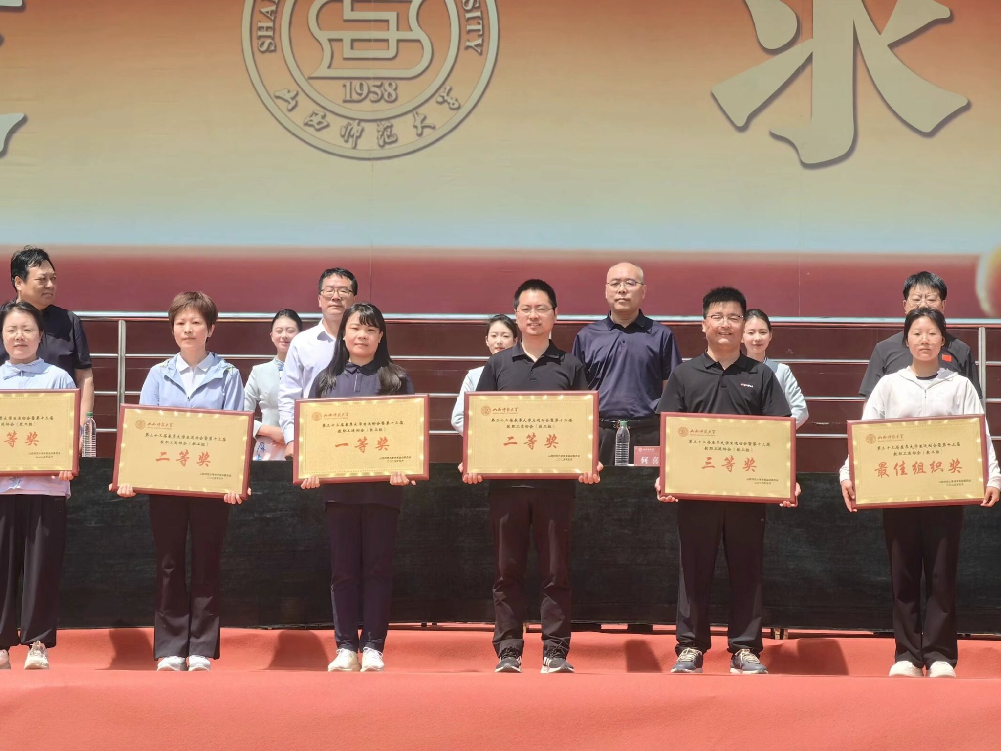 开幕式上,激昂的《运动员进行曲》奏响,永利集团官网师生方阵齐喊着“化材启航,斗志昂扬;赛场逐梦,共铸辉煌”的嘹亮口号,意气风发地入场,自信的笑容洋溢在每个人脸上,尽显化材人的青春朝气与蓬勃风采。本届运动会采用分组竞技模式,设有专业组、阳光组和教工组等三大组别,共包括110个竞赛项目。在为期三天的比赛中,学生运动员们发扬奋斗精神,和自我较量,同团队协作,使竞技与友谊并存,彰显了化材学子蓬勃向上的青春活力。在足球踢点、瞎子敲锣、羽毛球拍托网球跑、长绳8字跳等活动的赛场上,教职工运动员们化身追风逐梦的勇士,在绿茵场上挥洒汗水,用拼搏的姿态诠释着对运动的热爱与坚守,成为赛场上动人的风景线。最终,永利集团官网喜获教工组团体三等奖。
