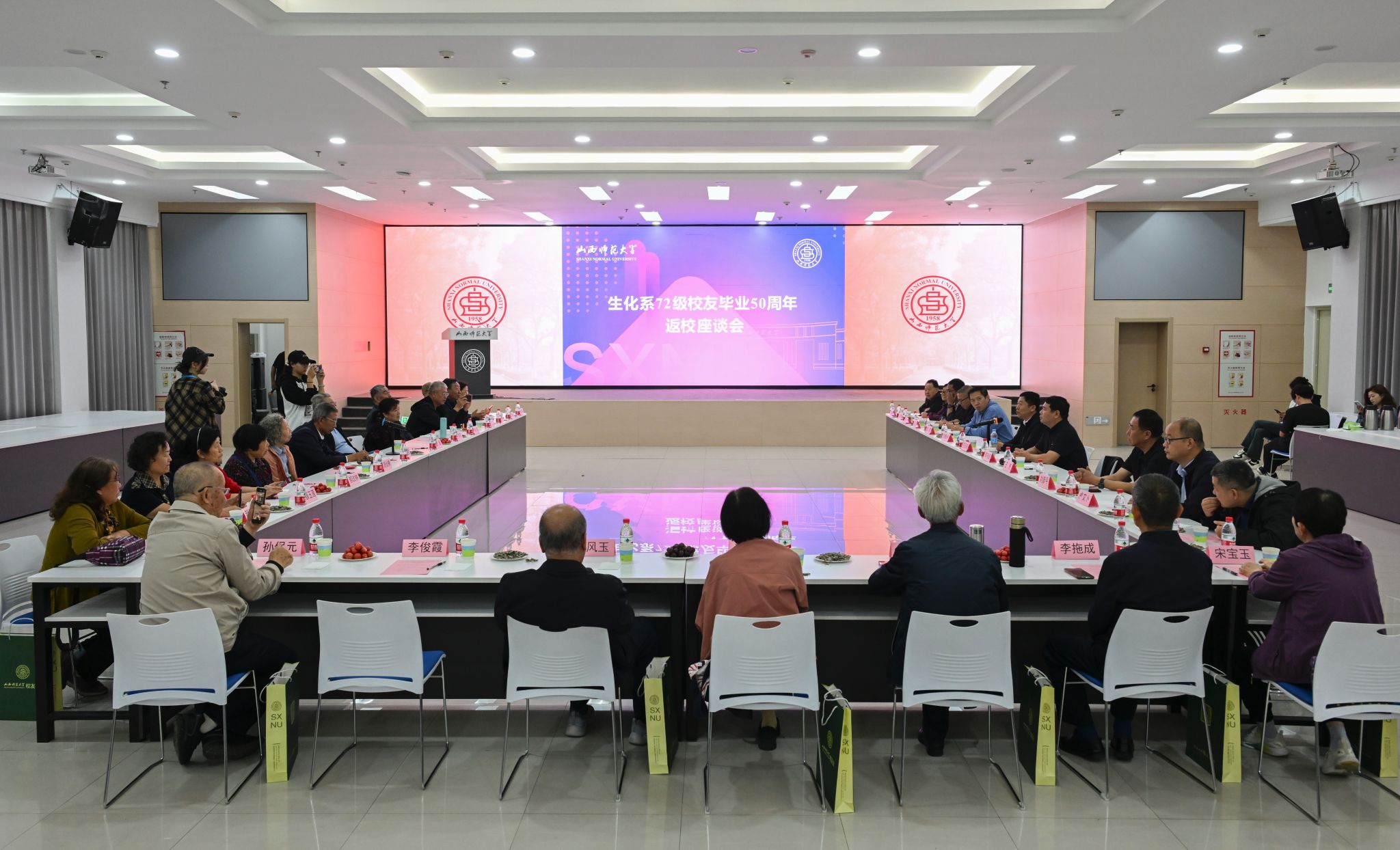 陈向波主任对各位校友的到来表示了热烈欢迎和诚挚问候,刘维仲院长和王芳院长分别介绍了生命科学学院和77779193永利集团的发展情况,校友代表崔毅、李俊文等发言,他们表示没有学校的就培养没有他今天所取的成绩,感谢母校的培养,也感慨母校所发生的巨大变化。其余与会校友纷纷表示希望可以同母校一起,为推动学校和学院的高质量、高层次、复合性、创造性方面发展贡献力量,并祝福母校的明天更加辉煌!在一片祥和气氛中,校友们向学院赠送了题字为“桃李满天下”的牌匾。最后,王志强副书记回顾了学校六十六年的办学历程,从高层次人才引进、学生招生情况及办学空间等方面介绍了学校的发展现状,并表达了对校友一如既往关心学校发展的感谢。